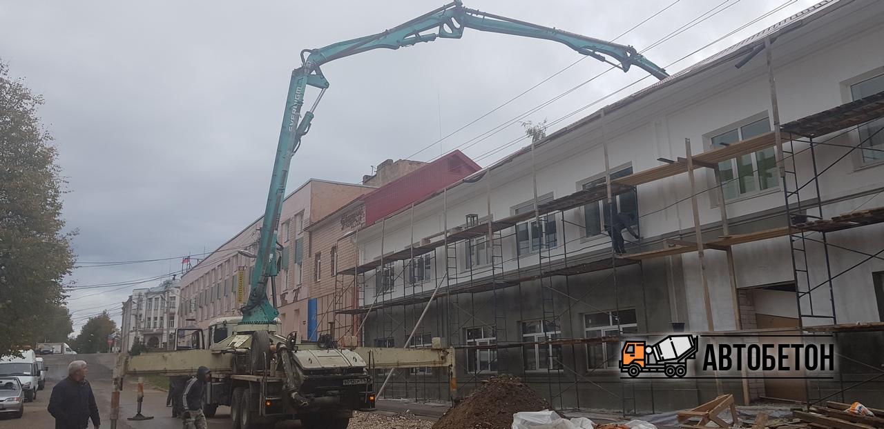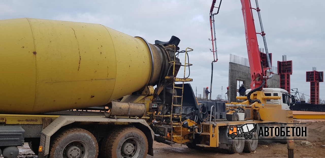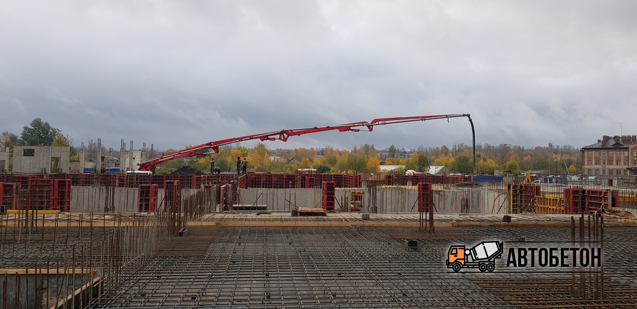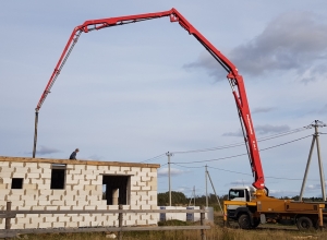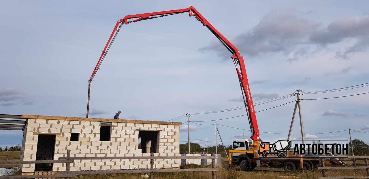 строительных работ с доставкой и прокачкой автобетононасосом.