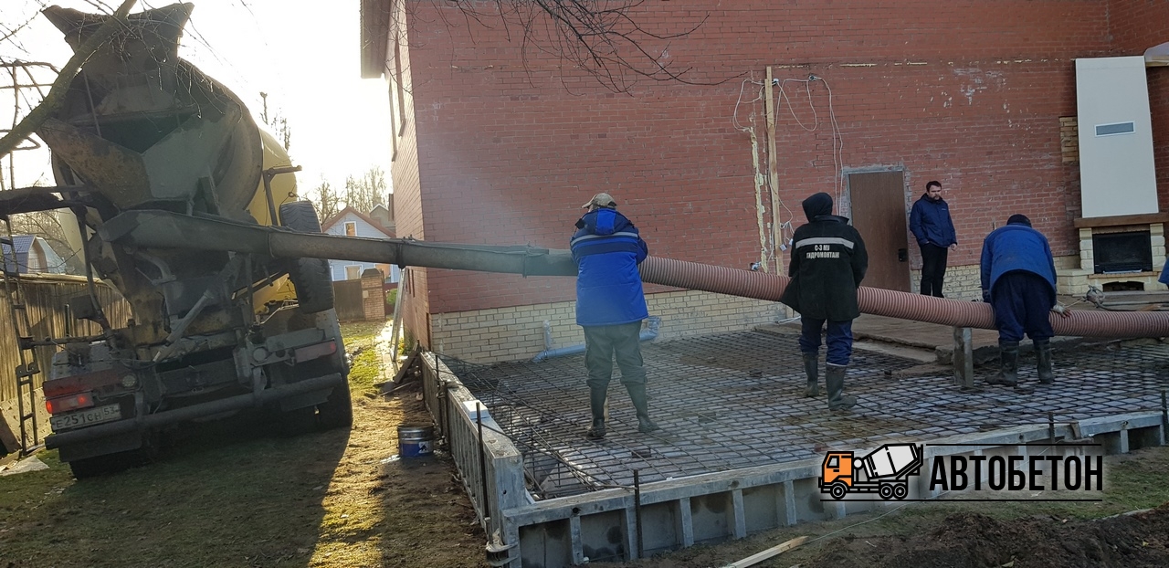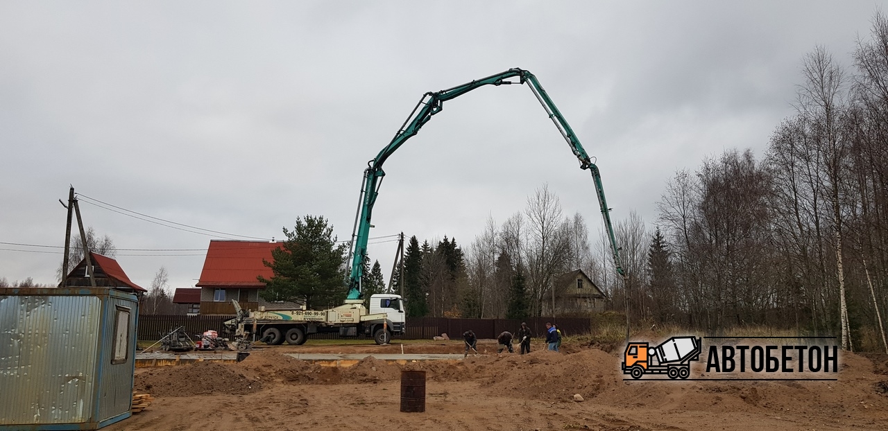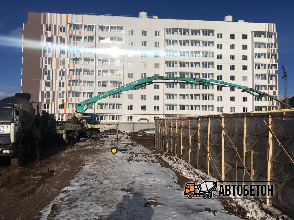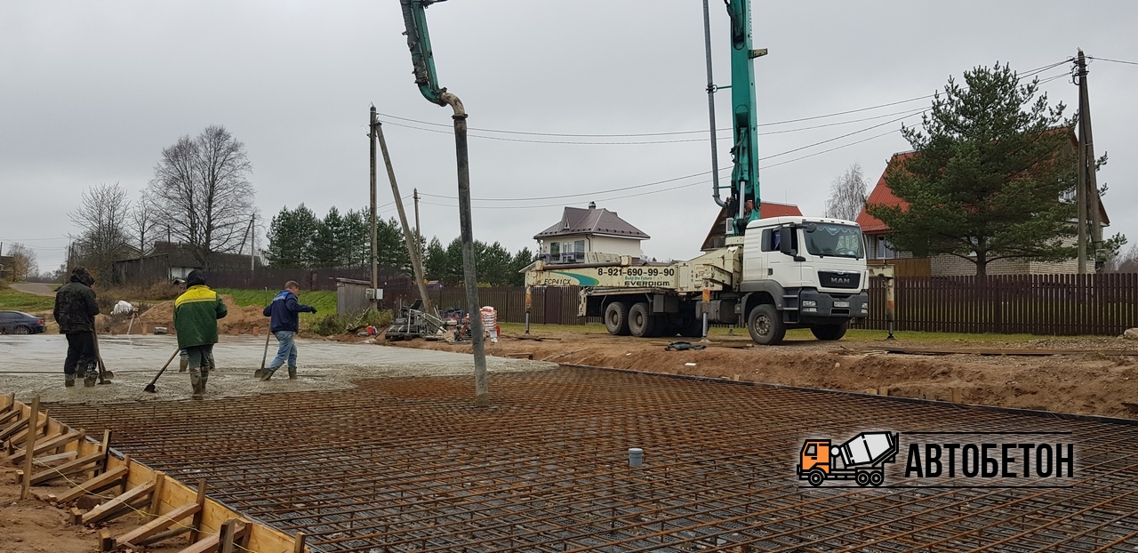 строительных работ с доставкой и прокачкой автобетононасосом.